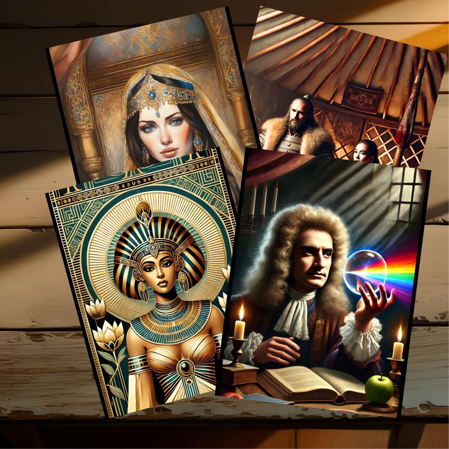 Our Adventure Cards Collection is a treasure trove of 3-card premium sets, each capturing a moment from Zocrates’ time-traveling journeys—where history, art, legends, and faraway worlds collide.