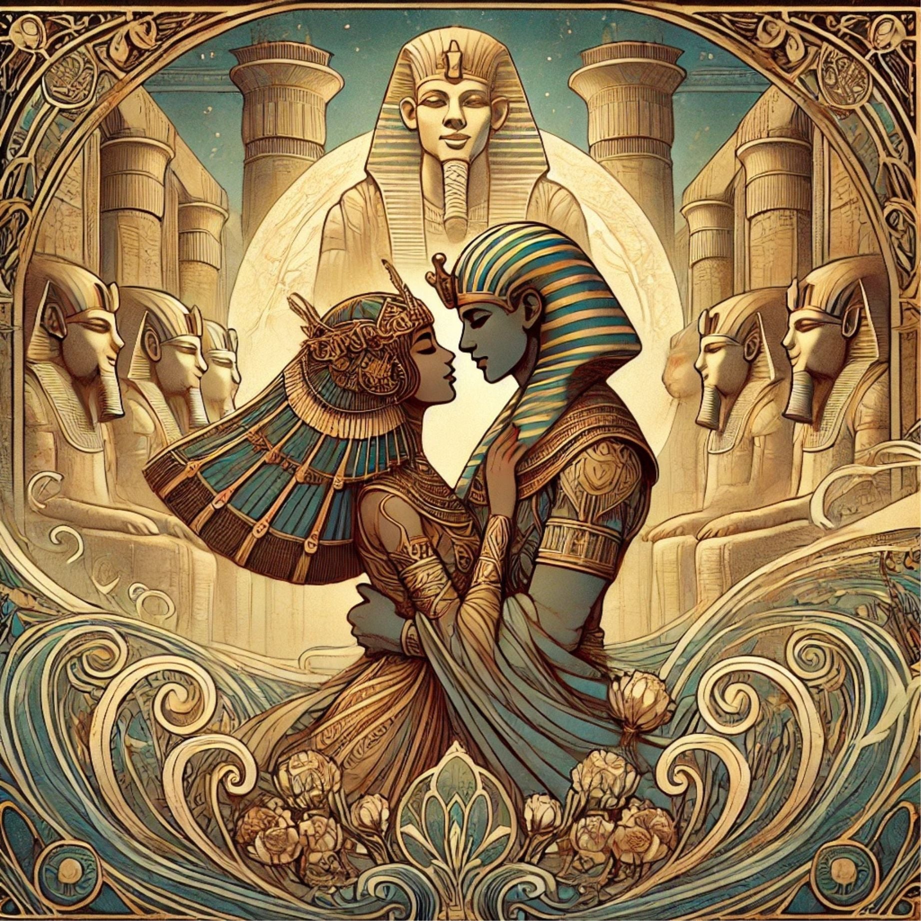 Step into the golden sands of ancient Egypt and witness a love story carved into eternity. This premium square laser lomo card captures the tender embrace of Queen Nefertari and Pharaoh Ramses II, set against the breathtaking backdrop of the Abu Simbel temples—monuments Ramses built as a timeless declaration of love for his queen.