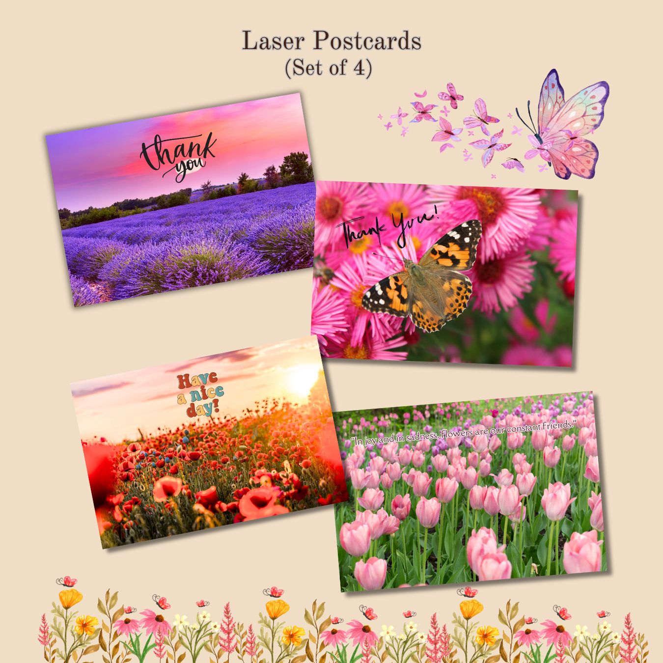 Set of 4 unique Assorted Affirmation and Thank You-themed designs