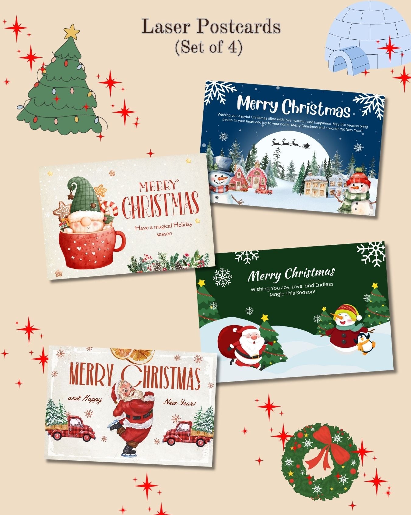 🎄✨ Merry Christmas Laser Postcards (Set of 4) ✨🎄